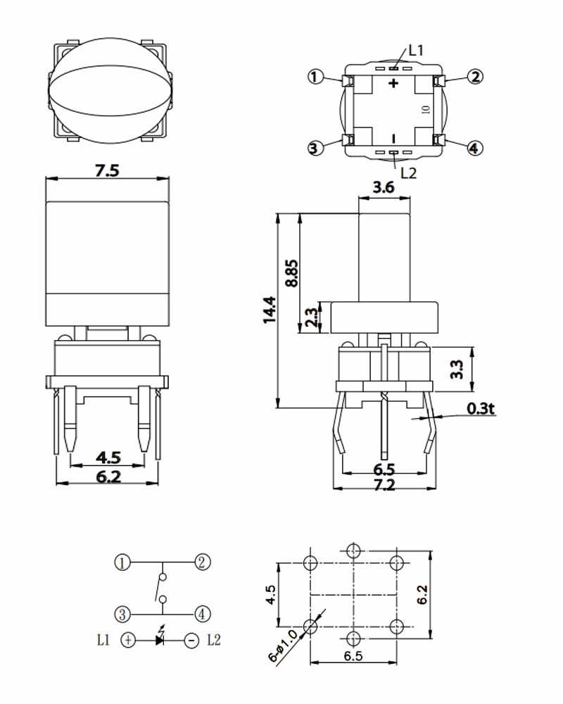 • 側按90度帶燈輕觸按鍵開關 側按90度帶燈輕觸按鍵開關
