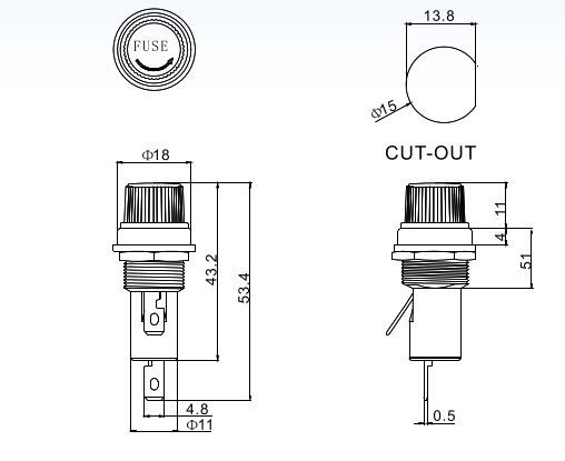 保險絲座FH系列,保險管座常見于PCB固定和螺母固定兩種方式,電流10-30A不等,配置的保險管5*20mm和6*30mm,擁有UL CE CQC認證,廣泛用于汽車行業,家電等