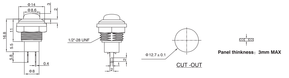 按鍵開關PB系列,功能有帶鎖LOCK和復位常開,開孔10~16不等,常于設備儀器,家電產品等