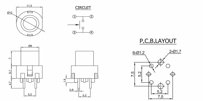 • 輕觸開關TS4-1-G 輕觸開關TS4-1-G